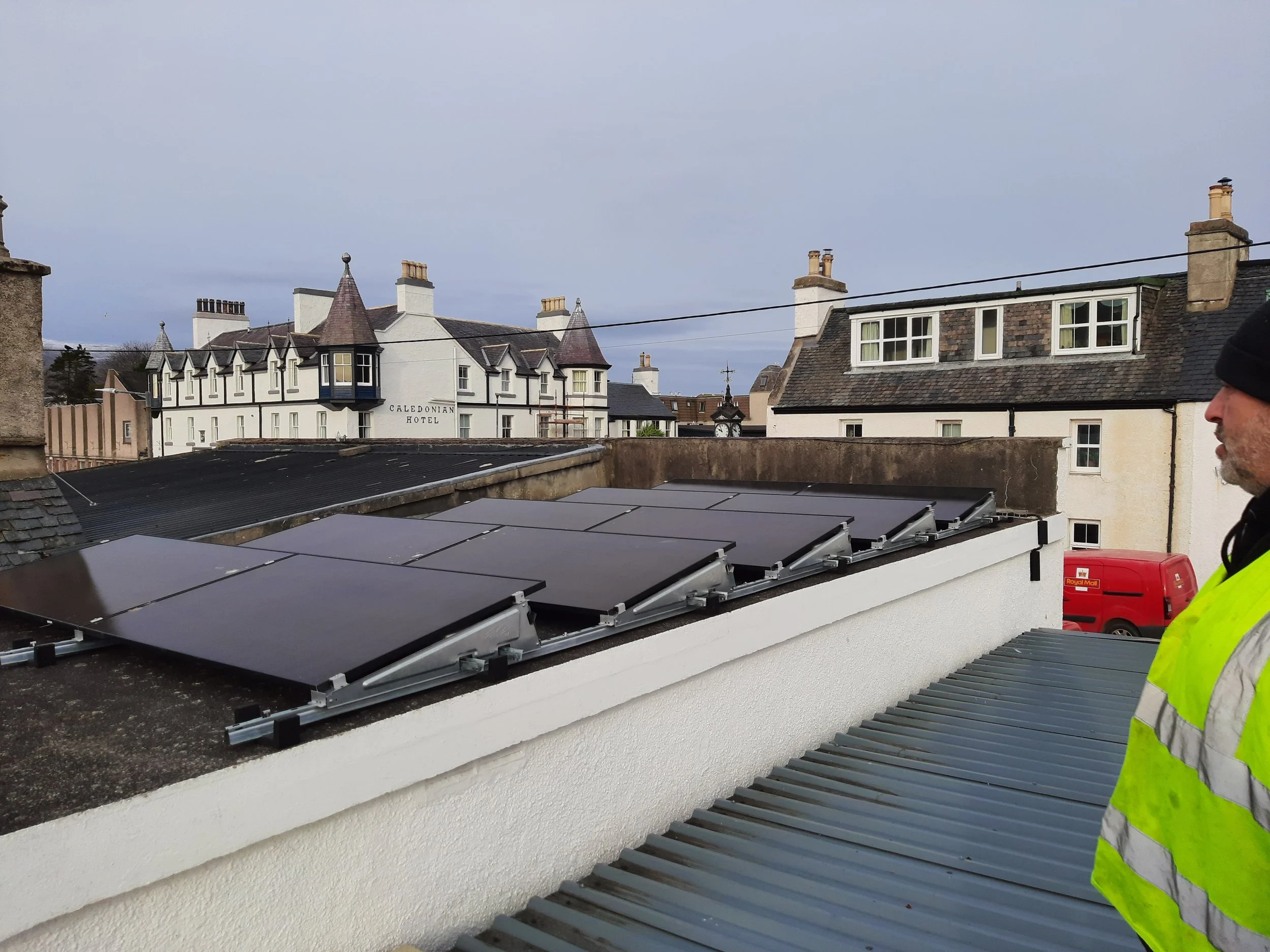 Thanks to Highlands and Islands Climate Hub funding (a CLLD grant) we now have solar panels providing power for the New Broom. These were installed Feb 2026 and from March onwards we will be showing you here how much power they are supplying and in future months we can show what our cost savings are. Watch this space